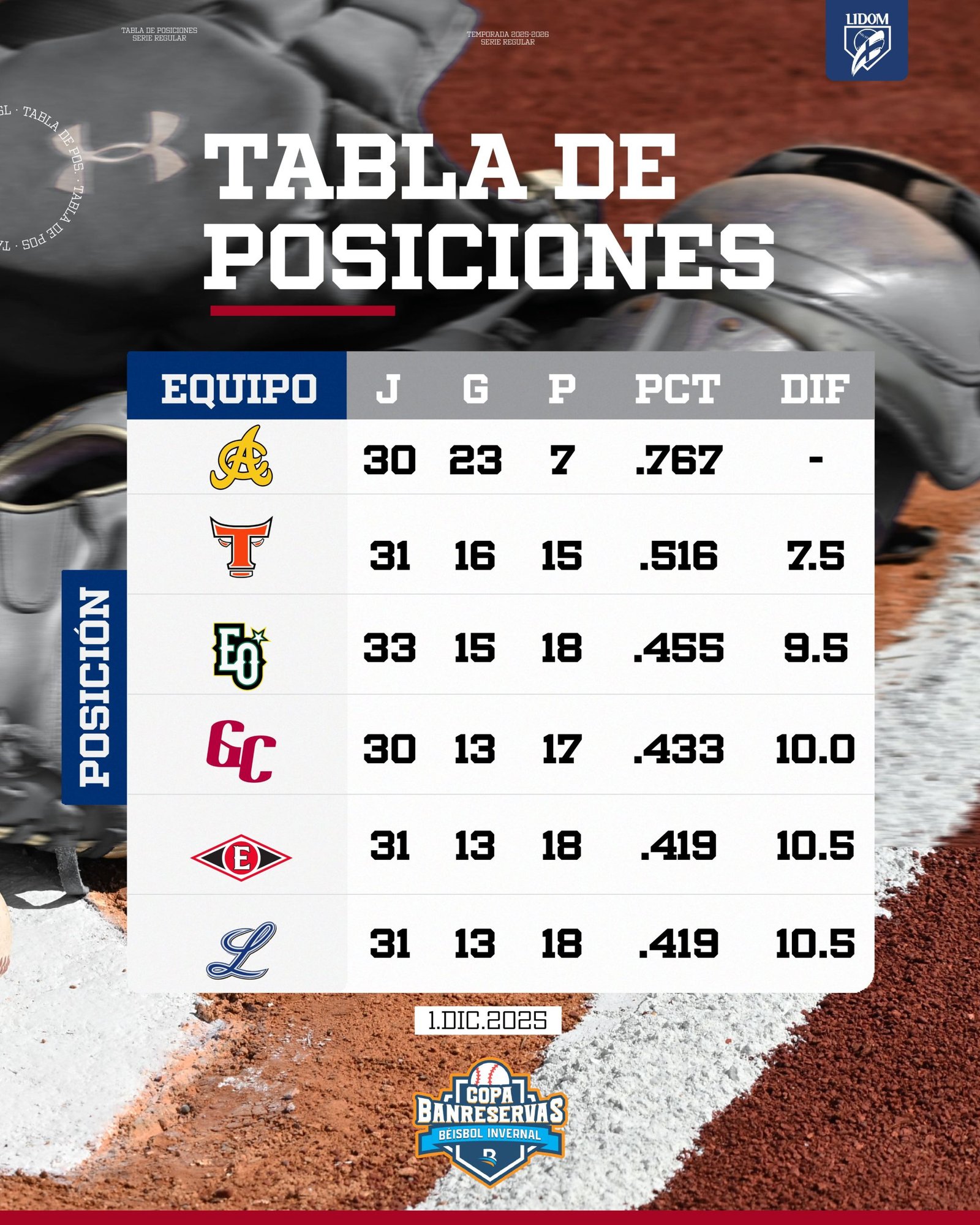 ⚾ Así quedaron las posiciones del béisbol dominicano: